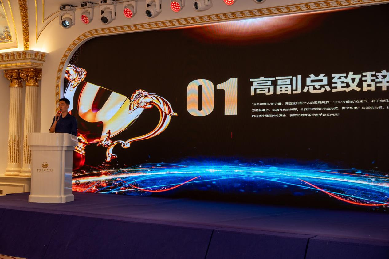 7月18日晚6時(shí)08分,主題年會(huì)晚宴在激昂的氛圍中盛大啟幕。晚宴伊始,公司副總經(jīng)理高總登臺(tái)致辭,深情回顧了公司在過(guò)去一年風(fēng)浪中錨定航向、合力前行的征程,并深刻闡述了“正心”作為方舟破浪核心動(dòng)力的重要意義。